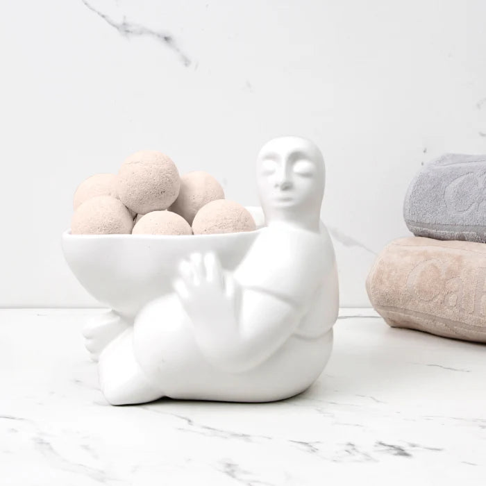 Indulge in luxurious living with the 'enigma' Medium Bowl. Crafted from satin-finished porcelain, this stunning bowl features a wavy top and sculptural facial features-inspired sides. Perfect for holding snacks and desserts, it adds a touch of art to any setting. Ideal for multiple place settings.