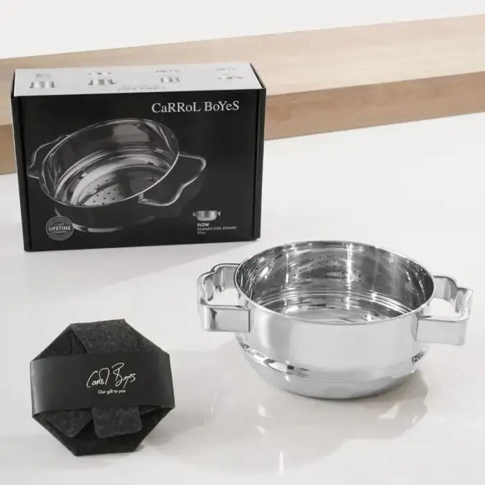 A 20cm Steamer from the Flow Cookware range, crafted from 18/8 stainless-steel with a mirror-polished finish. Designed to fit the 20cm Flow Casserole Pot.This range features unique handes designed by Carrol for a comfortable cooking experience.